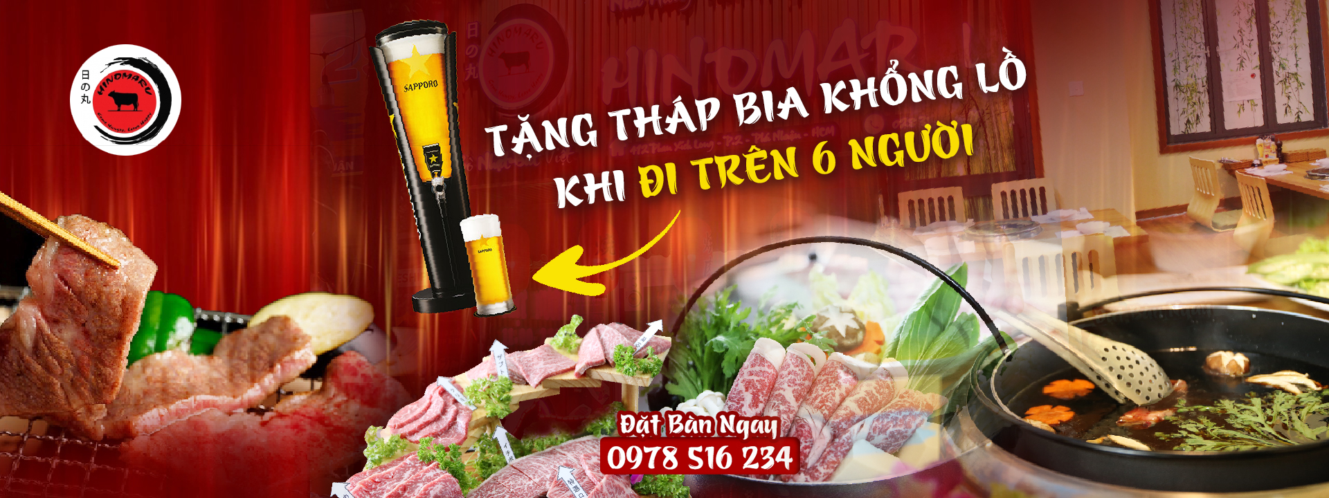 Đặc biệt tại #Bò_Nhật_Đất_Việt_Hinomaru, ăn bò nướng chuẩn vị lại thêm ƯU ĐÃI LỚN: TẶNG NGAY THÁP BIA KHỔNG LỒ khi bạn đi cùng nhóm 6 người: