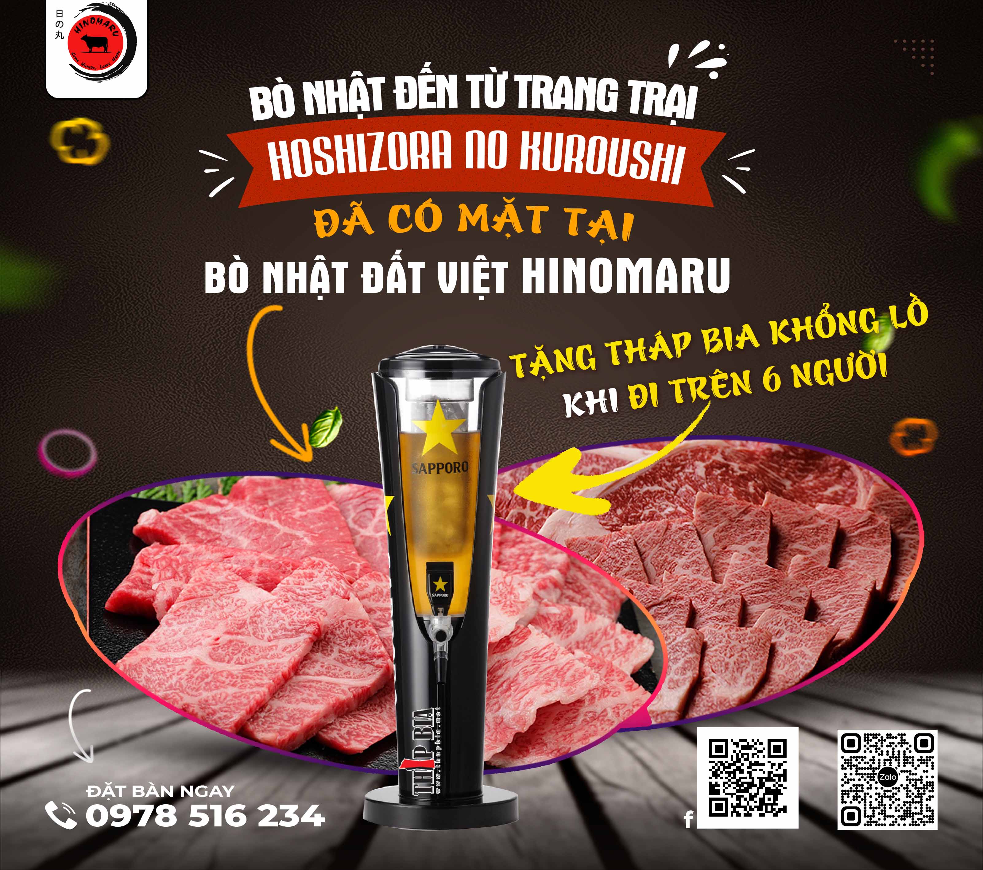 THƯỞNG THỨC LẨU BÒ CÓ NGAY THÁP BIA MIỄN PHÍ TẠI BÒ NHẬT ĐẤT VIỆT HINOMARU